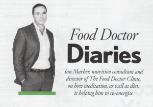 Ian Marber is the UK’s leading nutrition consultant and director of The Food Doctor Clinic. He’s written loads of best selling books and you may have seen his range of fantastic products in the supermarket under the brand “The Food Doctor”. He is a busy man – TV shows, writing columns for magazines, launching books and meeting with clients in his London consultancy. So it was no surprise that he was looking for a way to balance all that activity with some quiet time for himself. Hence his interest in meditation and so it was a real pleasure to be a part of his process of discovery into this area.